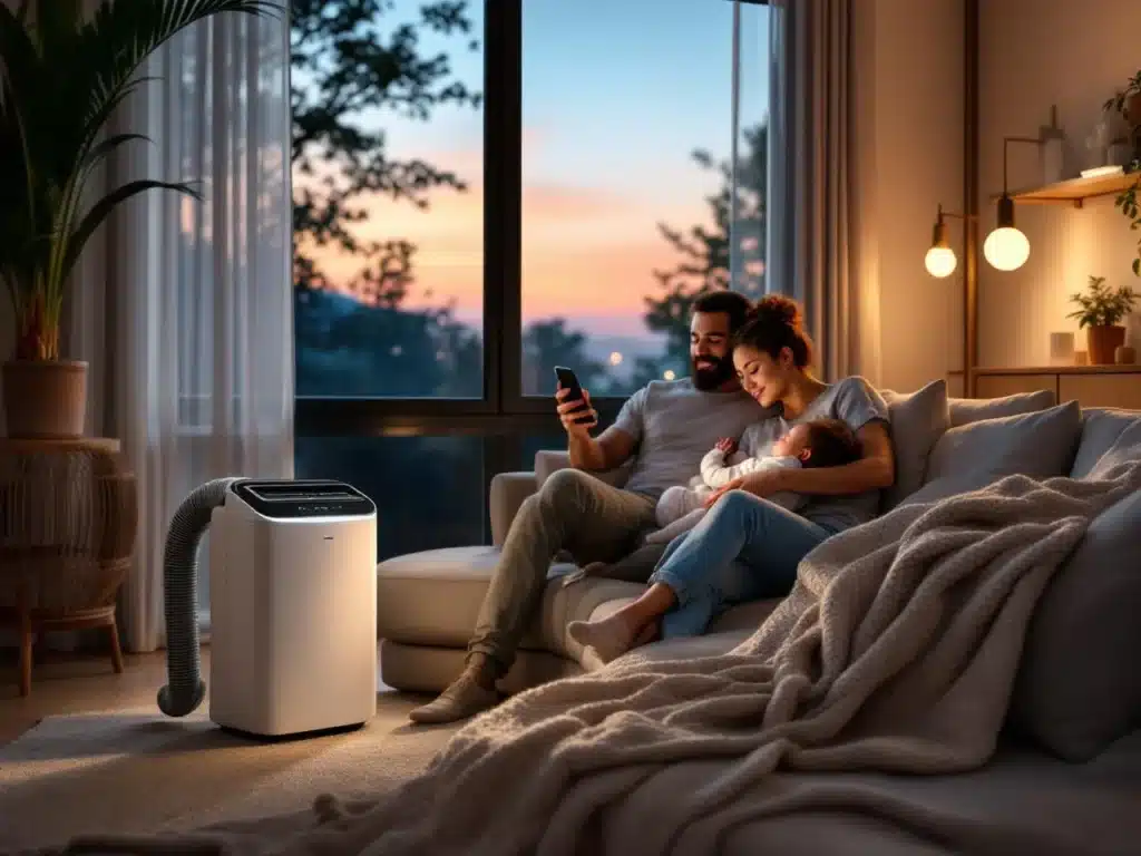 Un seul bloc dans le salon et la pièce retrouve ses murs libres. Le réversible mobile assure la fraîcheur en plein après-midi puis la chaleur douce dès que la température chute, sans multiplier les équipements. Fini le radiateur d’appoint coincé derrière le canapé ni le climatiseur saisonnier relégué au grenier, un appareil 2 en 1 remplace deux machines et réduit l’encombrement des câbles, tuyaux et rallonges.